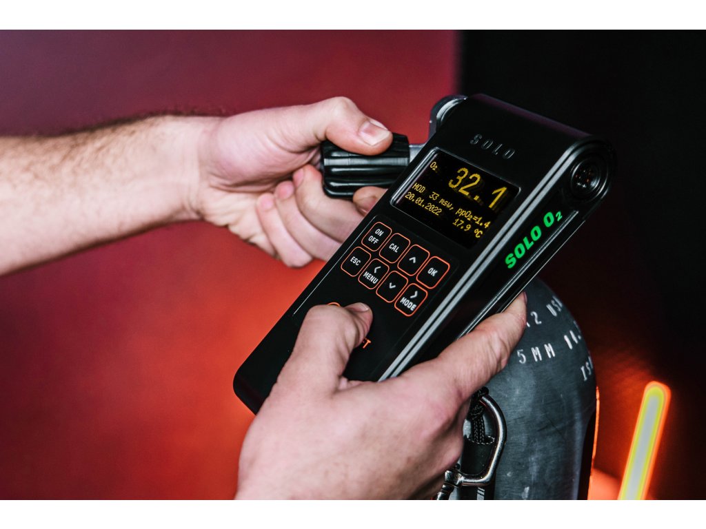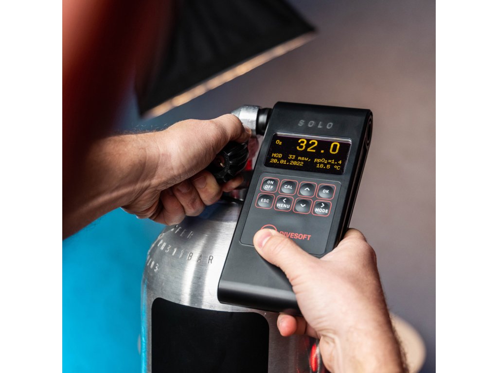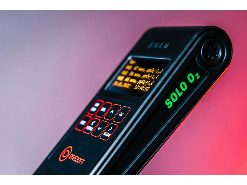 Divesoft SOLO O2 predstavuje špičkový diagnostický prístroj určený na presnú analýzu koncentrácie kyslíka v potápačských zmesiach (Nitrox). Prístroj je postavený na modulárnej architektúre s využitím elektrolytického senzora Teledyne, čo zaručuje vysokú opakovateľnosť merania s odchýlkou menšou než 1 %. Telo analyzátora je vyrobené z vysoko odolného polyméru schopného odolávať mechanickému namáhaniu v náročných expedičných podmienkach. Integrovaný softvér automaticky dopočítava Maximum Operating Depth (MOD) pre preddefinované hodnoty parciálneho tlaku kyslíka (ppO2 1.2, 1.4, 1.6 bar). Vďaka USB-C rozhraniu je zabezpečené nielen rýchle nabíjanie Li-Ion akumulátora, ale aj možnosť aktualizácie firmvéru, čo predlžuje technologickú životnosť zariadenia.