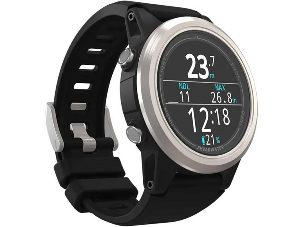 Shearwater Teric predstavuje vrcholnú konfiguráciu potápačského počítača v hodinkovom formáte. Prístroj využíva overený dekompresný algoritmus Bühlmann ZHL-16C s voliteľnými gradientnými faktormi, čo umožňuje presné prispôsobenie konzervativizmu podľa fyziológie potápača. Plnofarebný 1,39" AMOLED displej s vysokým rozlíšením zaisťuje excelentnú čitateľnosť aj v podmienkach s nulovou viditeľnosťou. Konštrukcia je postavená na báze 316 nerezovej ocele a zafírového sklíčka, čo zaručuje odolnosť voči mechanickému poškodeniu a hydrostatickému tlaku až do hĺbky 200 metrov. Systém podporuje bezdrôtovú integráciu tlaku až pre štyri vysielače a ponúka dedikované módy pre rekreačné, technické, CCR a freedive potápanie.