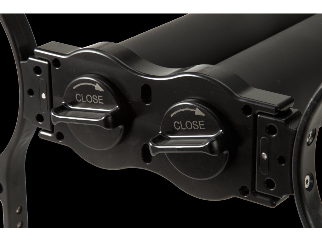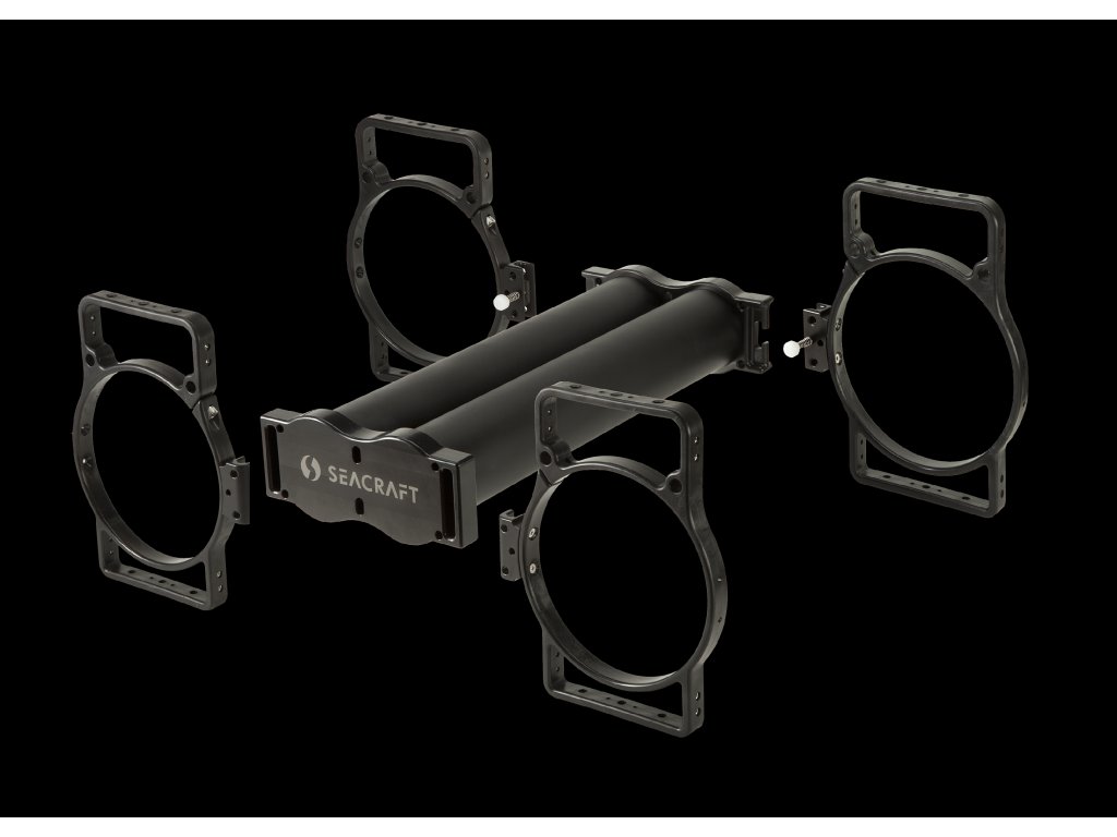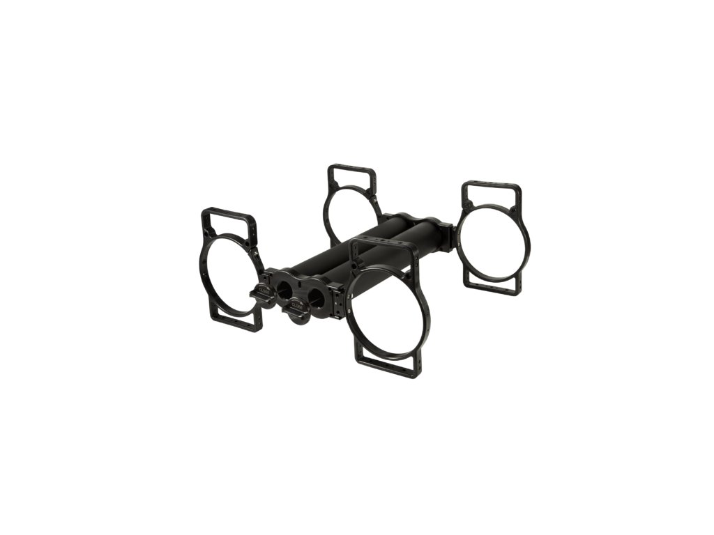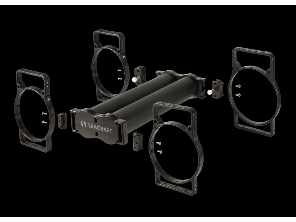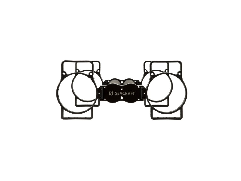 Vysoko robustná spojovacia súprava navrhnutá pre náročné technické potápanie, kde je nevyhnutná redundancia alebo zvýšený ťah pomocou dvoch DPV (Dive Propulsion Vehicles). Systém využíva úzku plošinu pre minimalizáciu čelného odporu a zachovanie hydrodynamickej efektivity celého setu. Konštrukcia je postavená na báze eloxovaného hliníka a vysokopevnostného Delrinu, čo zaručuje neutrálnu stabilitu a extrémnu mechanickú odolnosť v prostredí slanej aj sladkej vody. Modulárny dizajn umožňuje rýchlu montáž a demontáž bez potreby špeciálneho náradia v poľných podmienkach, pričom bezpečnostné prvky eliminujú riziko samovoľného uvoľnenia počas prevádzky v prúde alebo v stiesnených priestoroch.