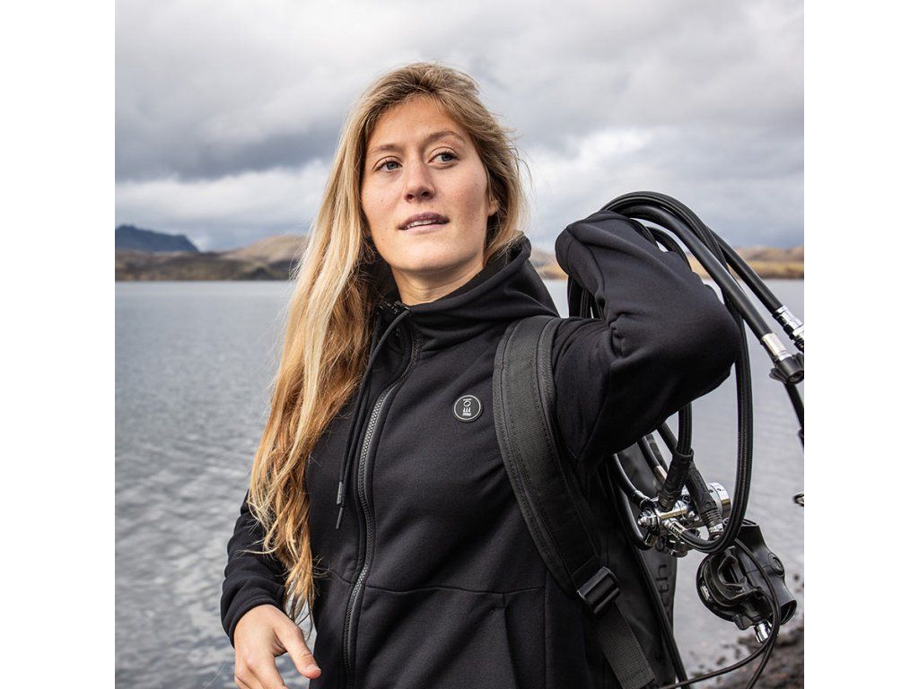 Dámska mikina Xerotherm predstavuje špičkovú technologickú úroveň v oblasti tepelnej ochrany pre potápačov. Pôvodne vyvinutá z materiálov pre NASA, využíva unikátne vlastnosti tkaniny Polartec® Power Stretch®, ktorá funguje na princípe zachytávania mikroskopickej vrstvy vzduchu priamo pri pokožke. Vďaka zloženiu z 33 % recyklovaného nylonu ECONYL® poskytuje vynikajúci tepelný odpor pri minimálnom objeme. Kľúčovou technickou vlastnosťou je schopnosť transportu vlhkosti (wicking effect), ktorá je najrýchlejšia v celom portfóliu Fourth Element. Materiál zostáva funkčný aj pri čiastočnom zaplavení suchého obleku, kedy udržuje tepelný komfort vďaka zachytenému vzduchu v štruktúre vlákien. Strih je špeciálne navrhnutý pre ženskú anatómiu, aby minimalizoval mŕtvy priestor a zabezpečil voľnosť pohybu pod suchým oblekom alebo počas dekompresných prestávok.