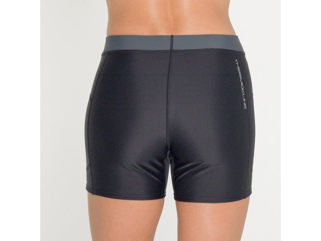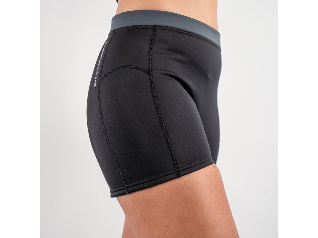 Technicky vyspelé dámske šortky z radu Thermocline predstavujú ekologickú a funkčnú alternatívu k tradičnému neoprénu. Materiál je konštruovaný ako laminát s vnútornou fleece vrstvou pre odvod vlhkosti a integrovanou membránou, ktorá zabezpečuje tepelný komfort ekvivalentný 2mm neoprénu. Na rozdiel od neoprénu je tento materiál nestlačiteľný, čo znamená, že jeho izolačné vlastnosti a vztlak zostávajú konštantné bez ohľadu na hĺbku ponoru. Anatomický strih rešpektuje dámsku morfológiu a ploché švy minimalizujú riziko abrázie pri dlhodobom používaní pod mokrým oblekom alebo pri samostatnom nosení v teplých vodách.