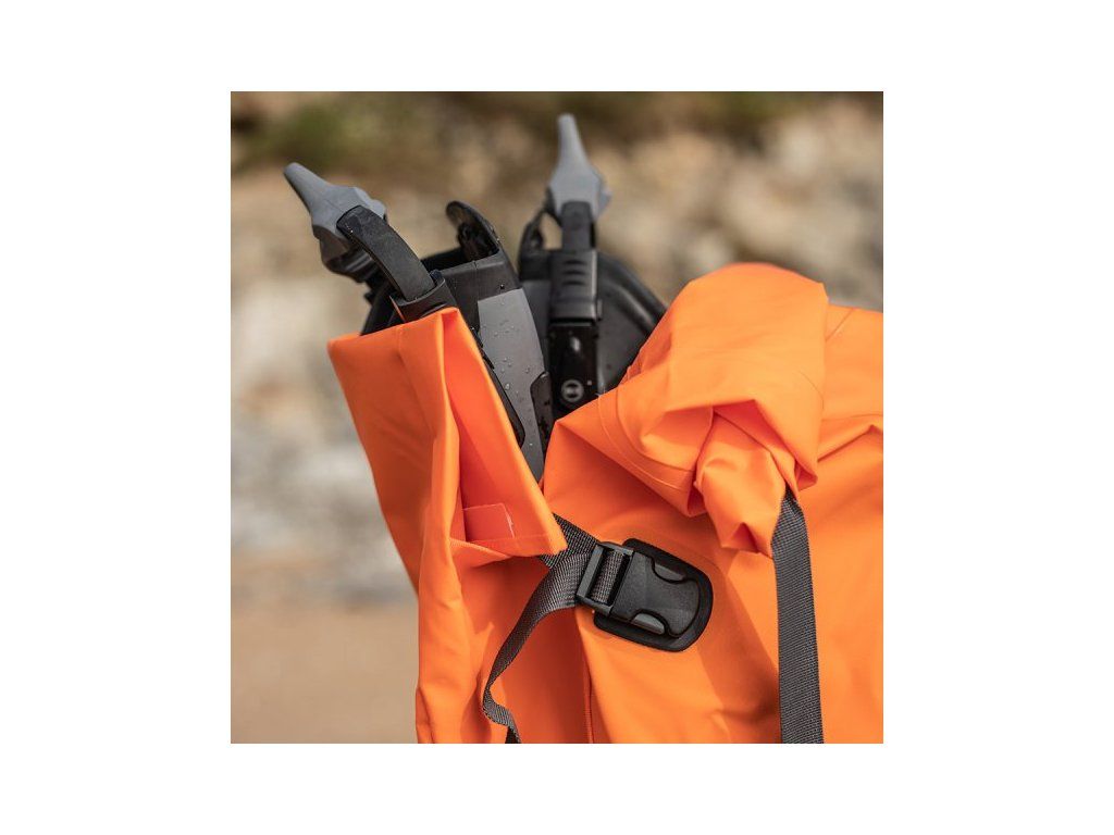 Profesionálny suchý vak Expedition Series Drypack s objemom 60 litrov je navrhnutý pre náročné logistické operácie v potápačskom prostredí. Vyrobený z vysokopevnostného 500D materiálu s obojstranným nánosom, ktorý zabezpečuje extrémnu odolnosť voči abrázii a mechanickému poškodeniu pri transporte na lodiach alebo v teréne. Konštrukcia využíva technológiu vysokofrekvenčného (HF) zvárania spojov, čo garantuje 100% vodotesnosť voči striekajúcej vode, dažďu a vlhkosti. Rolovací uzatvárací systém so spevnenou hornou lištou a bočnými prackami umožňuje efektívnu kompresiu objemu podľa aktuálneho obsahu. Integrovaný nosný systém s polstrovanými ramennými popruhmi a hrudným popruhom umožňuje komfortný presun ťažkej mokrej alebo suchej výstroje na dlhšie vzdialenosti, zatiaľ čo signálna oranžová farba zvyšuje pasívnu bezpečnosť a viditeľnosť v expedičných podmienkach.