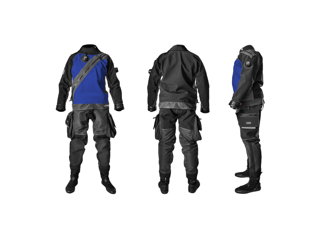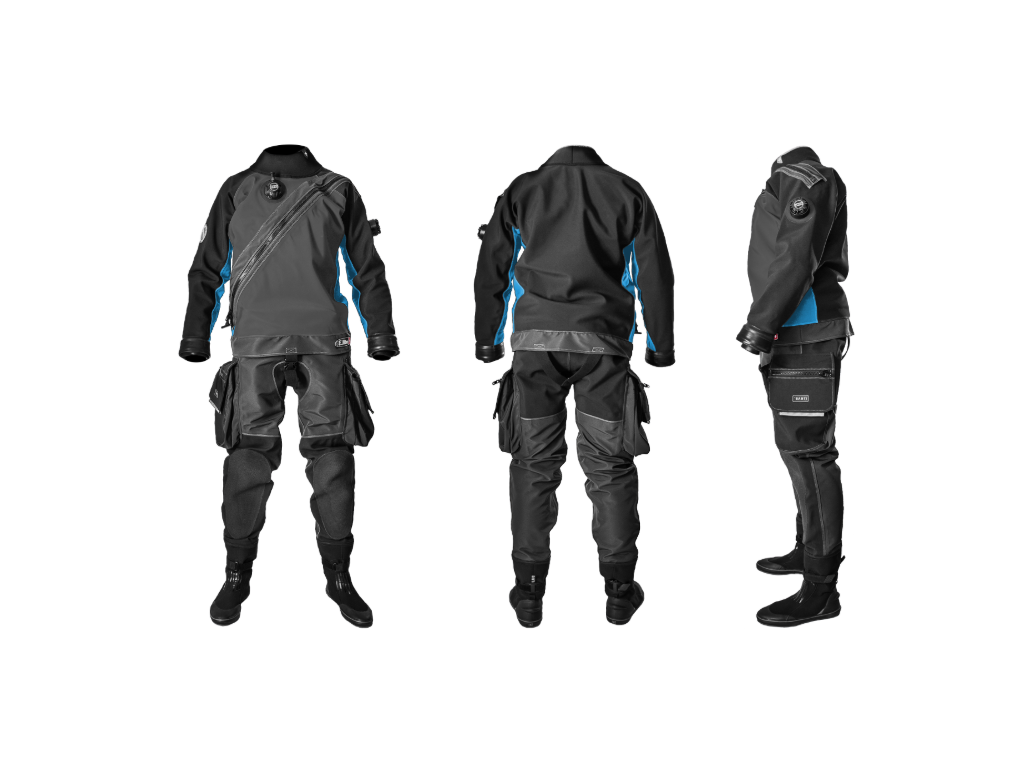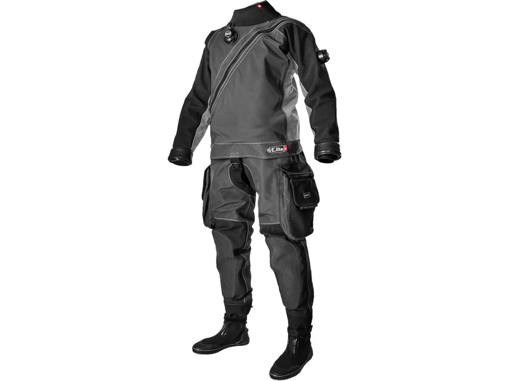 Santi E.Lite Plus predstavuje vrchol evolúcie v konštrukcii suchých oblekov, kombinujúci extrémnu odolnosť modelu E.Lite s bezkonkurenčnou flexibilitou. Je vyrobený z inovatívneho trilaminátu Ripstop Nylon/Butylén/Polyester s plošnou hmotnosťou 535 g/m2. Ergonomický Y-strih v spojení s teleskopickým torzom eliminuje obmedzenie pohybu v ramenách a rozkroku, čo je kritické pri technických manévroch a jaskynnom potápaní. Oblek je štandardne vybavený systémom Smart Seals pre rýchlu výmenu manžiet v poľných podmienkach a kevlarovými výstužami kolien pre maximálnu ochranu v abrazívnom prostredí.