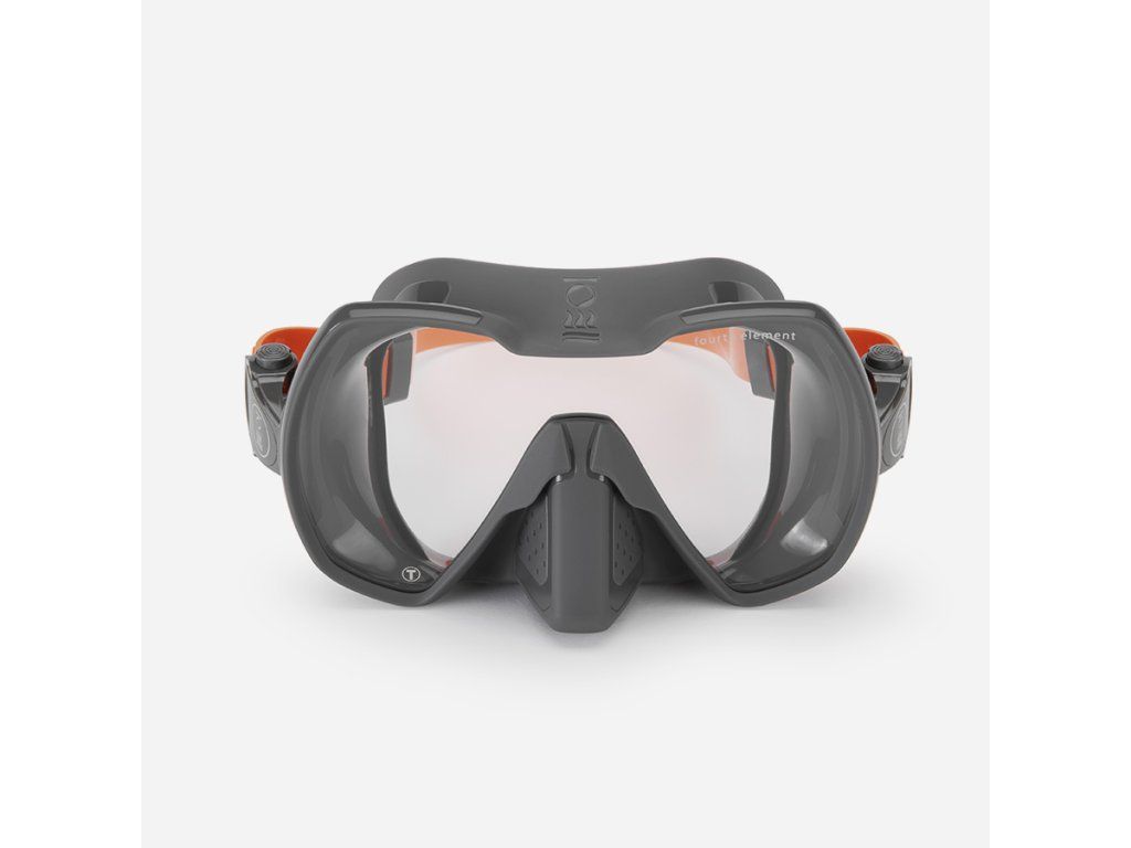 Maska Fourth Element Seeker predstavuje špičku v oblasti vizuálneho komfortu a ergonomického dizajnu. Je skonštruovaná s cieľom maximalizovať zorné pole potápača pri súčasnom zachovaní minimálneho vnútorného objemu, čo výrazne uľahčuje proces vylievania masky a vyrovnávania tlaku. Bezrámová (frameless) technológia integruje temperované Pure Clear sklo priamo do lícnice z vysokokvalitného medicínskeho silikónu, čím eliminuje mŕtve uhly a zvyšuje štrukturálnu integritu. Špecifický tvar nosového vrecka s textúrovanými plochami zaručuje spoľahlivú ekvalizáciu aj pri použití hrubých neoprénových rukavíc v náročných podmienkach.