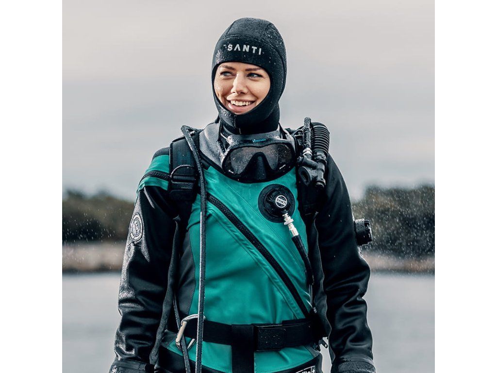 Santi 7 mm kukla predstavuje kritický prvok tepelnej ochrany pre potápačov operujúcich v chladných klimatických podmienkach a pri dlhých expozičných časoch. Vyrobená z vysoko elastického neoprénu s vysokou hustotou, ktorý minimalizuje kompresiu materiálu vo veľkých hĺbkach a udržuje konštantné izolačné vlastnosti. Strih je navrhnutý s dôrazom na elimináciu mŕtveho priestoru a cirkulácie vody, zatiaľ čo vnútorná povrchová úprava 'smooth skin' zabezpečuje dokonalé priľnutie k tvárovej maske a krčnej manžete suchého obleku. Vonkajšie ploché švy sú dimenzované pre vysoké mechanické zaťaženie a dlhú životnosť v abrazívnom prostredí.