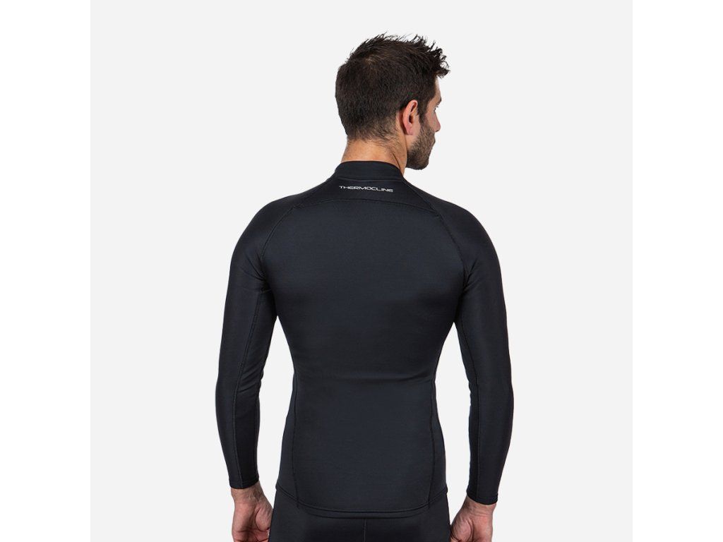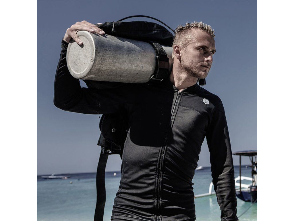 Pánska bunda Thermocline od Fourth Element predstavuje technologickú špičku v oblasti tepelnej ochrany bez použitia neoprénu. Konštrukcia pozostáva z pokročilého trojvrstvového laminátu: vonkajšia odolná vrstva z Econyl® nylonu, priedušná vodotesná membrána a vnútorný hrejivý fleece. Tento kompozit poskytuje tepelný komfort ekvivalentný 2 mm neoprénu, avšak s kľúčovou výhodou nulového vztlaku. Absencia plynových komôrok v materiáli zaručuje, že izolačné vlastnosti sa nemenia s narastajúcim tlakom v hĺbke. Ergonomický strih s plochými švami a vysoko kvalitným centrálnym zipsom zabezpečuje maximálnu mobilitu v ramennej osi, čo je kritické pri manipulácii s technickou výstrojom alebo ventily fliaš.