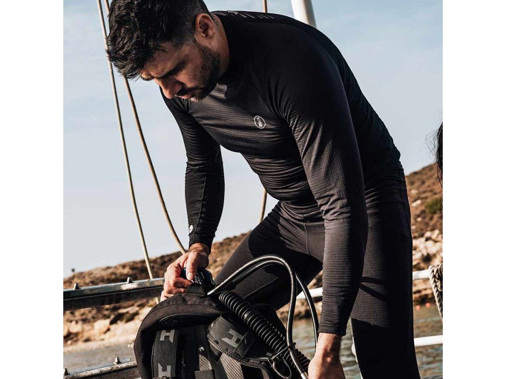 Špeciálna pletenina odvádza vlhkosť od pokožky, čím bráni podchladeniu v dekompresných fázach.