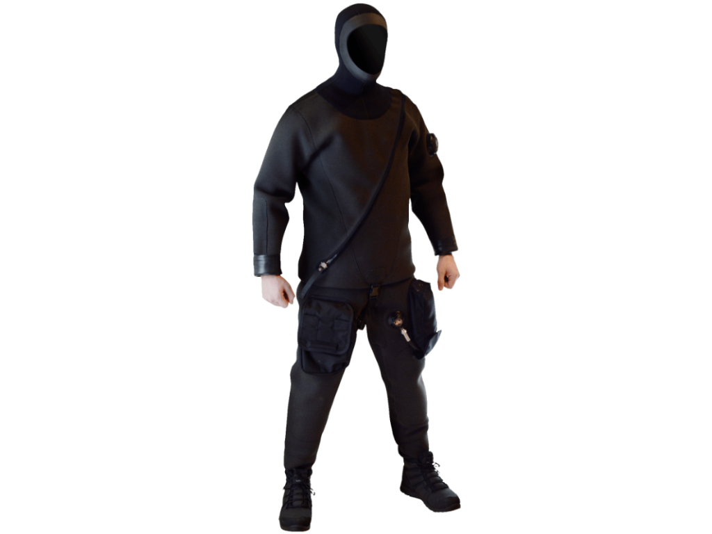 SF Tech Special Forces predstavuje technologickú špičku v segmente suchých oblekov určených pre najnáročnejšie technické, jaskynné a vrakové potápanie. Základ tvorí 2mm High-Density (vysokohustotný) komprimovaný neoprén, ktorý poskytuje inherentnú tepelnú izoláciu pri minimálnych zmenách vztlaku vplyvom hydrostatického tlaku. Celý povrch obleku je krytý vrstvou Kevlaru®, čo zabezpečuje bezkonkurenčnú odolnosť voči mechanickému prerezaniu a abrázii. Teleskopické torzo v kombinácii s predným diagonálnym zipsom umožňuje potápačovi úplnú autonómiu pri obliekaní a neobmedzený rozsah pohybu pri náročných manipuláciách vo vode.