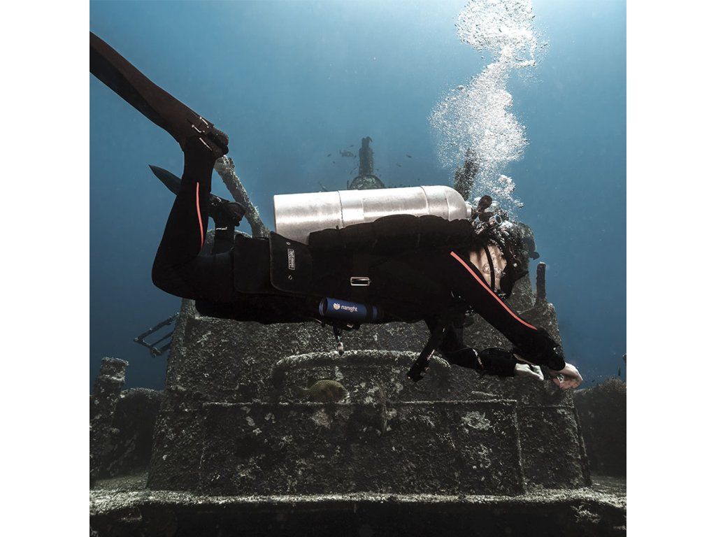 Materiál odolný voči roztrhnutiu a treniu v náročných podmienkach vrakového potápania.