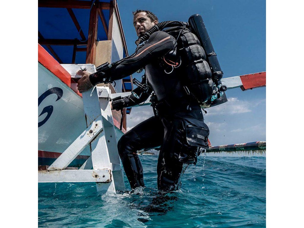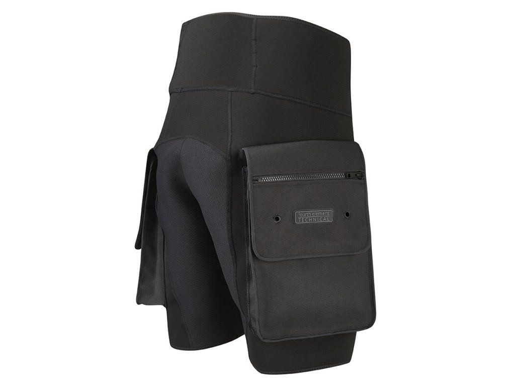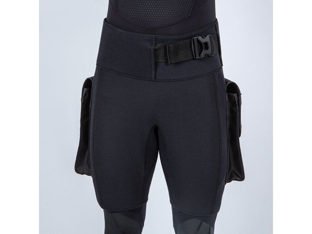 Vysoko odolné technické šortky navrhnuté na nosenie cez mokrý alebo polosuchý oblek. Hlavným účelom je poskytnúť potápačovi dodatočný úložný priestor bez nutnosti permanentnej modifikácie obleku. Šortky sú vyrobené z kvalitného neoprénu s vonkajšou nylonovou lamináciou pre zvýšenú odolnosť voči abrázii pri kontakte s vrakmi alebo v jaskynnom prostredí. Integrované veľkoobjemové cargo vrecká sú vybavené drenážnymi otvormi pre rýchly odtok vody a vnútornými upevňovacími bodmi pre fixáciu záložnej výstroje pomocou karabín (bolt-snaps). Anatomický strih a nastaviteľný bedrový systém zabezpečujú stabilitu vreciek aj pri plnom zaťažení, čím sa predchádza nežiaducemu posunu počas horizontálneho trimu.
